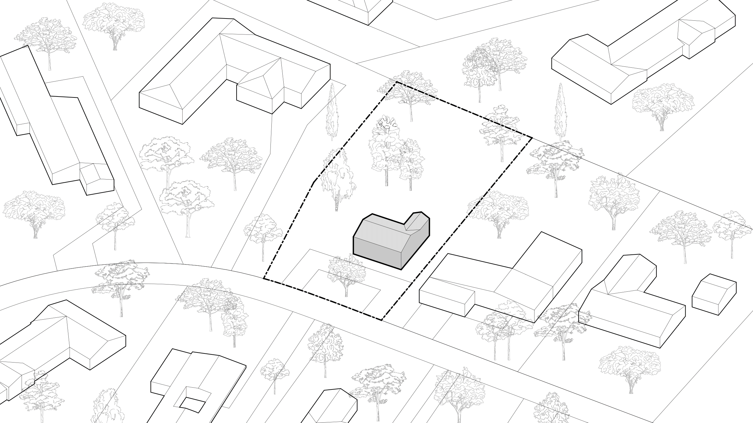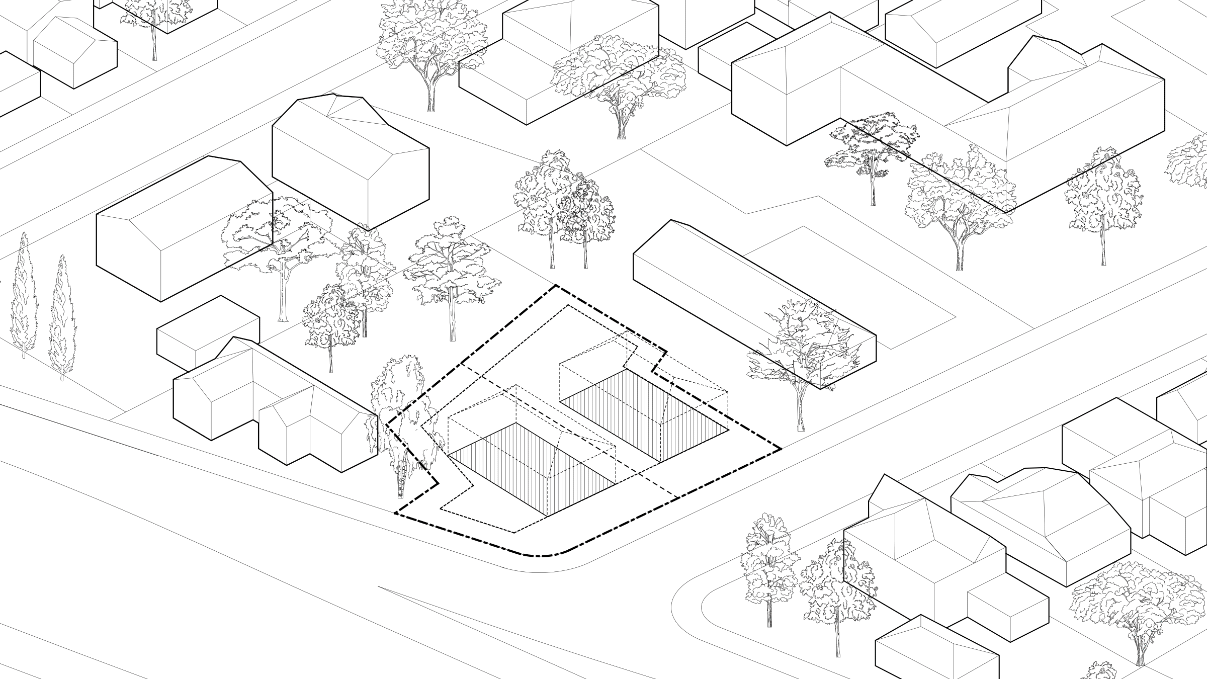 A large suburban lot, formerly used mostly for gardening, transformed into a slightly denser arrangement without disrupting the neighborhood scale. We removed a greenhouse, added an ADU, split the lot, and added two more units – creating four homes total where there was one. The owner can now welcome two daughters looking to start families and gain a foothold through homeownership, but can also be understood to address a myriad of other housing scenarios.